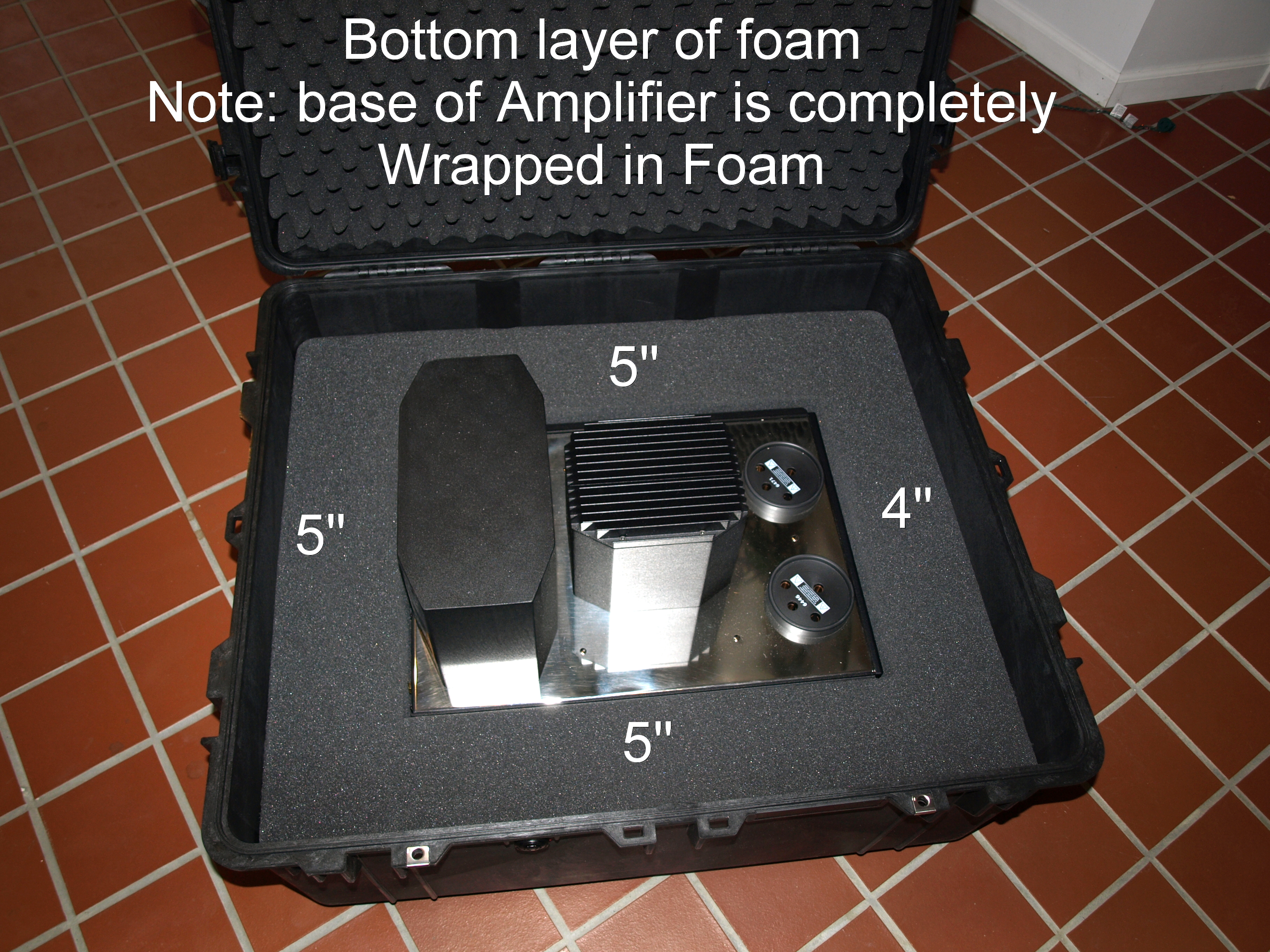 your amplifier and storing cases is a pain in the neck. So, Renaissance Audio Electronics, Inc., features returnable Pelican cases for your new amplier or for your amplifier repair. First layer of packing Another view of layer 1 2nd layer of foam in place Water tight case It really is a Pelican Pelicans have wheels! |